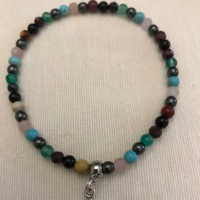 Nous aidons également à améliorer les problèmes de santé et de bien-être en proposant des bracelets associant des pierres naturelles qui permettent d’améliorer telle ou telle pathologie. Là encore, nous les réalisons sur place lors des salons.